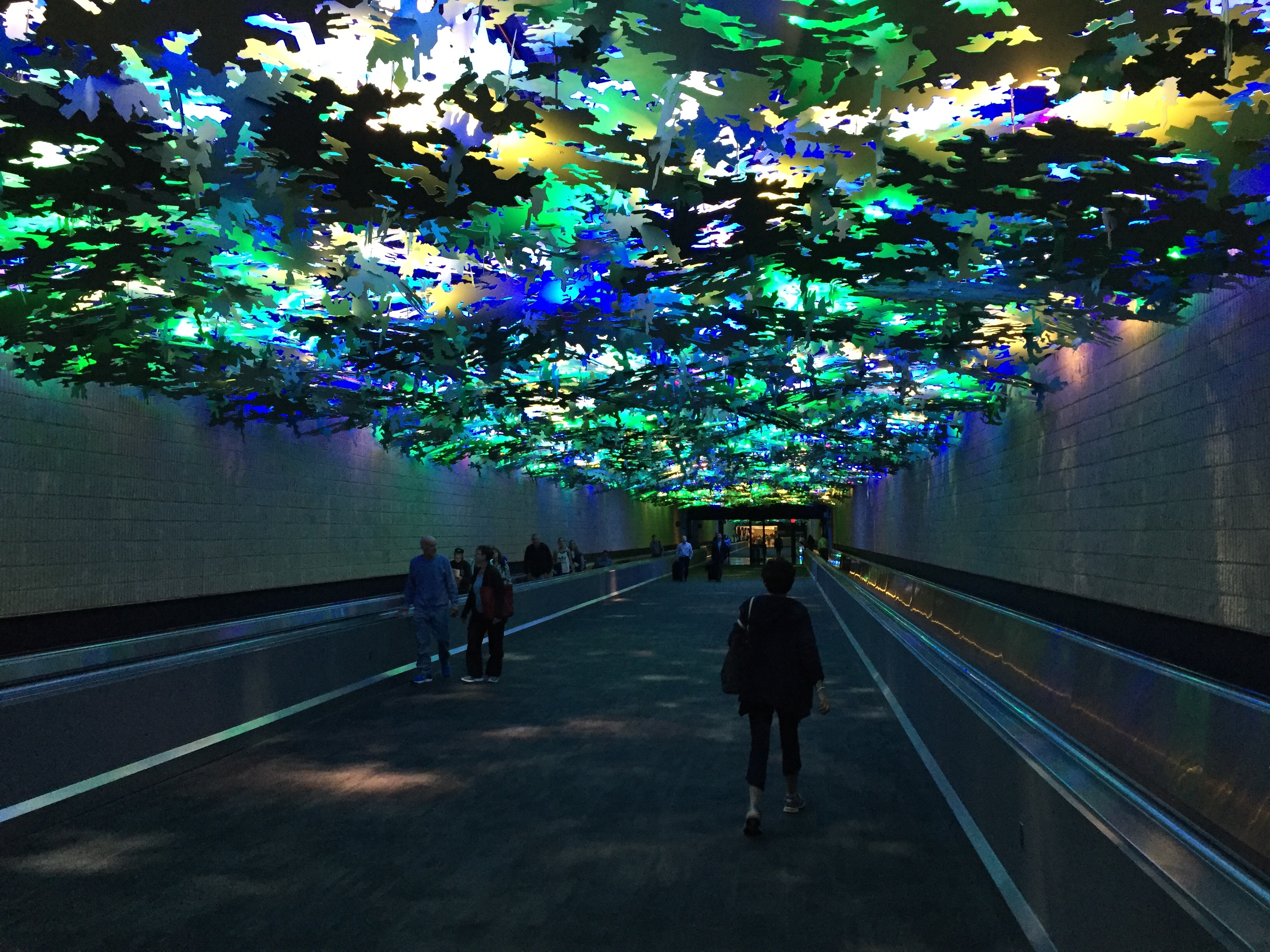 When time allows skip the mass transit and take a walk. Good for your health and peace of mind. Get some space and time to think. Many airports are trying to make these spaces enticing by putting in art installations. The one pictured above comes with the sounds of nature. Quite pleasant!